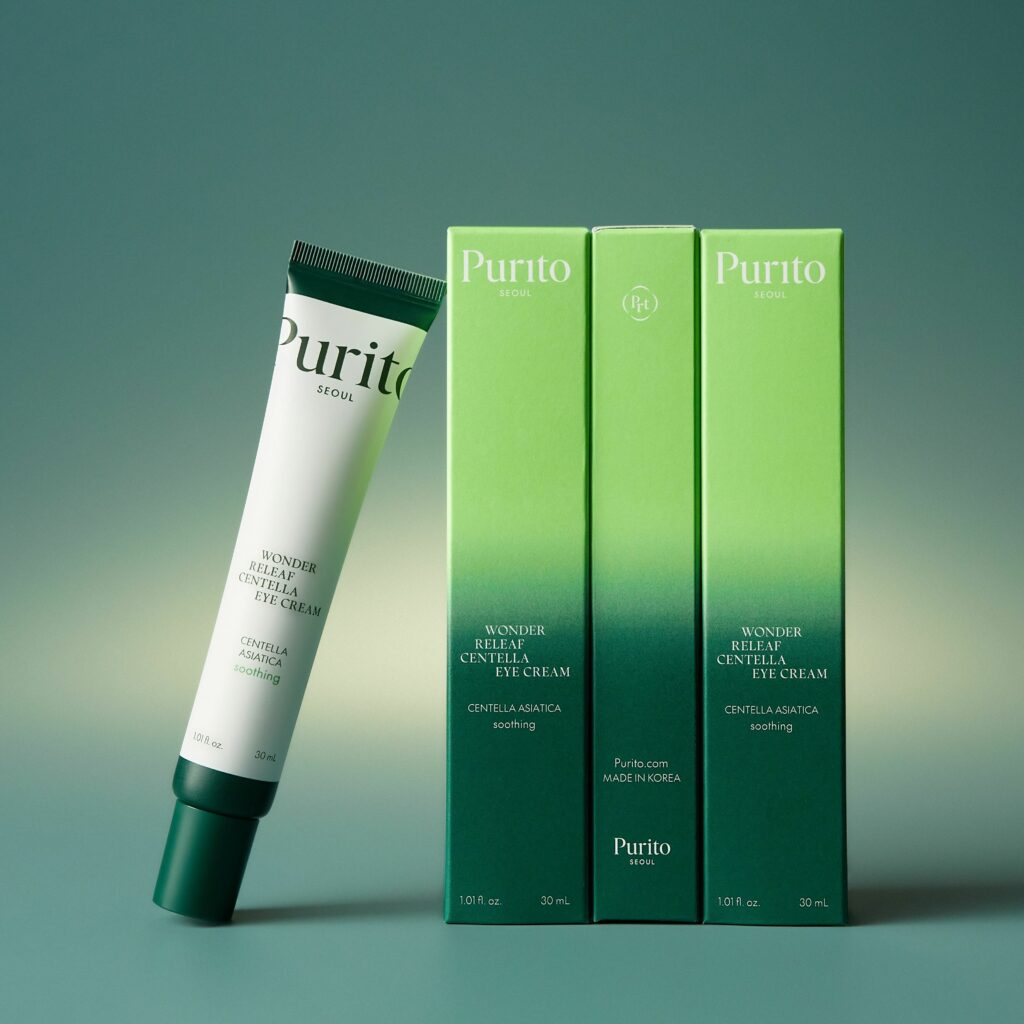 Антивіковий крем для шкіри навколо очей Purito Seoul Wonder Releaf Centella Eye Cream допомагає зменшити набряки та темні кола, розгладжує мімічні зморшки й підвищує пружність та еластичність шкіри. Крем освіжає погляд і надає зоні навколо очей більш підтягнутий, доглянутий вигляд.