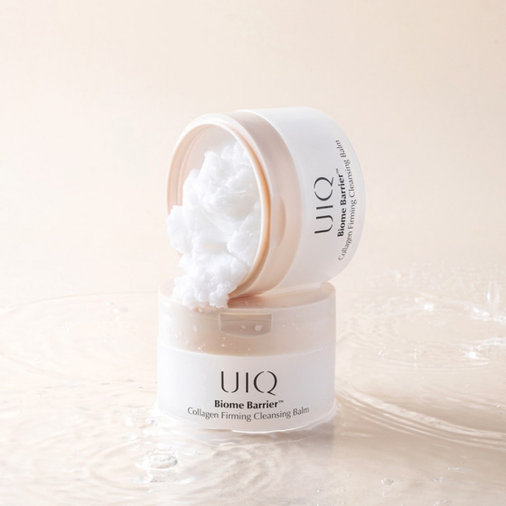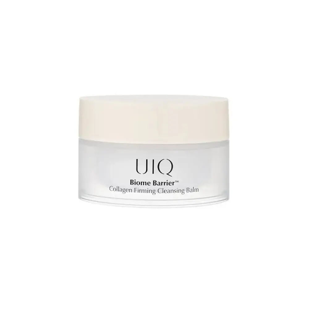 UIQ Biome Barrier Collagen Firming Cleansing Balm — ніжний гідрофільний бальзам з текстурою щербету, який ефективно очищує шкіру від забруднень, макіяжу та сонцезахисних засобів, не подразнюючи її. Засіб глибоко розчиняє себум і очищає пори, не забиваючи їх, сприяючи оновленню шкіри та залишаючи поверхню гладкою й зволоженою.
