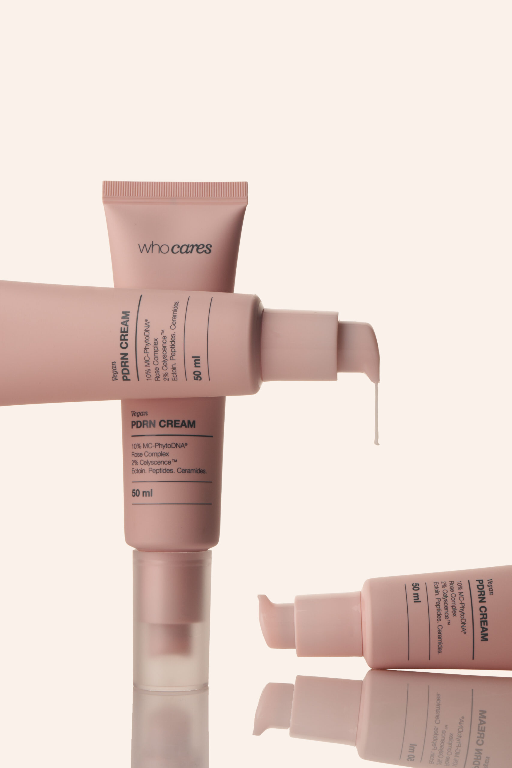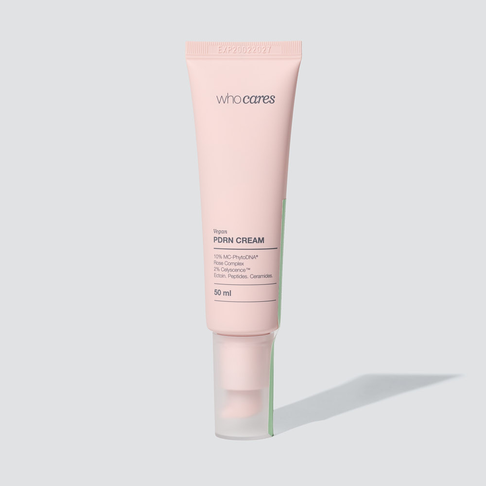Who Cares Vegan PDRN Cream – зволожувальний крем для обличчя з веганськими полінуклеотидами, який допомагає боротися з ознаками старіння та підтримує здоровий бар’єр шкіри.