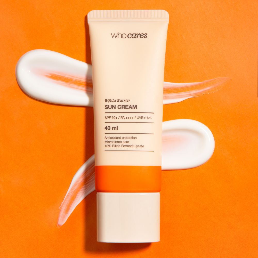 WhoCares Bifida Barrier Sun Cream — антиоксидантний сонцезахисний крем для щоденного догляду, що поєднує високий UVA/UVB-захист із відновленням шкірного барʼєра та мікробіому. Формула не лише захищає від сонячного випромінювання, а й зволожує, заспокоює та покращує загальний стан шкіри, запобігаючи фотостарінню.