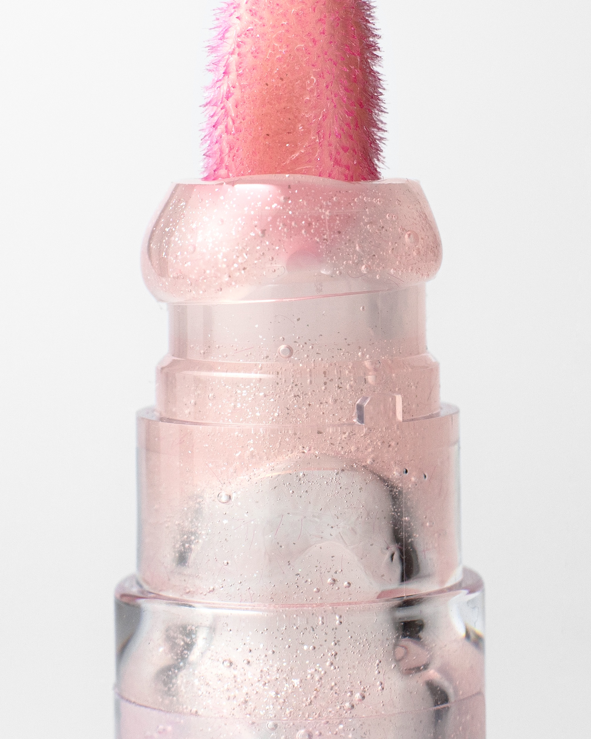 Легкий рожевий відтінок із найдрібнішими сяючими частинками створює ефект скляного фінішу, роблячи губи візуально більш об’ємними та доглянутими, без неприємних відчуттів поколювання чи подразнення. Легка текстура комфортна у носінні, а аромат стиглої черешні додає відчуття свіжості та приємності у використанні.