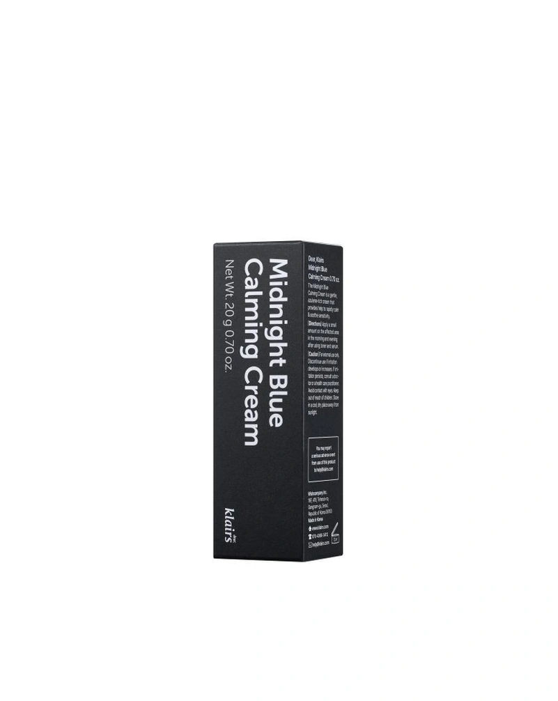 Klairs Midnight Blue Calming Cream — заспокійливий крем, який дбайливо зволожує та пом’якшує шкіру, не викликаючи почервоніння чи подразнення. Засіб усуває сухість і відчуття стягнутості, забезпечуючи комфорт навіть для чутливої та реактивної шкіри.
